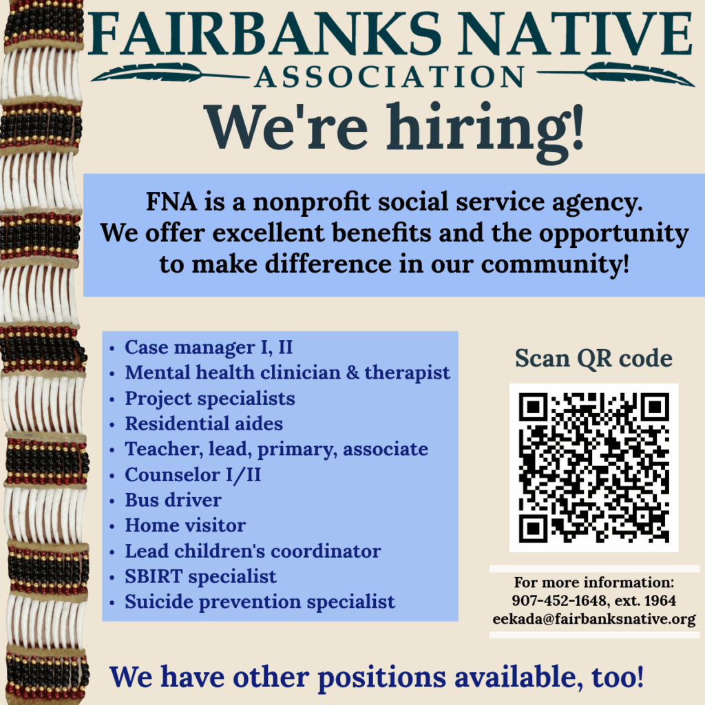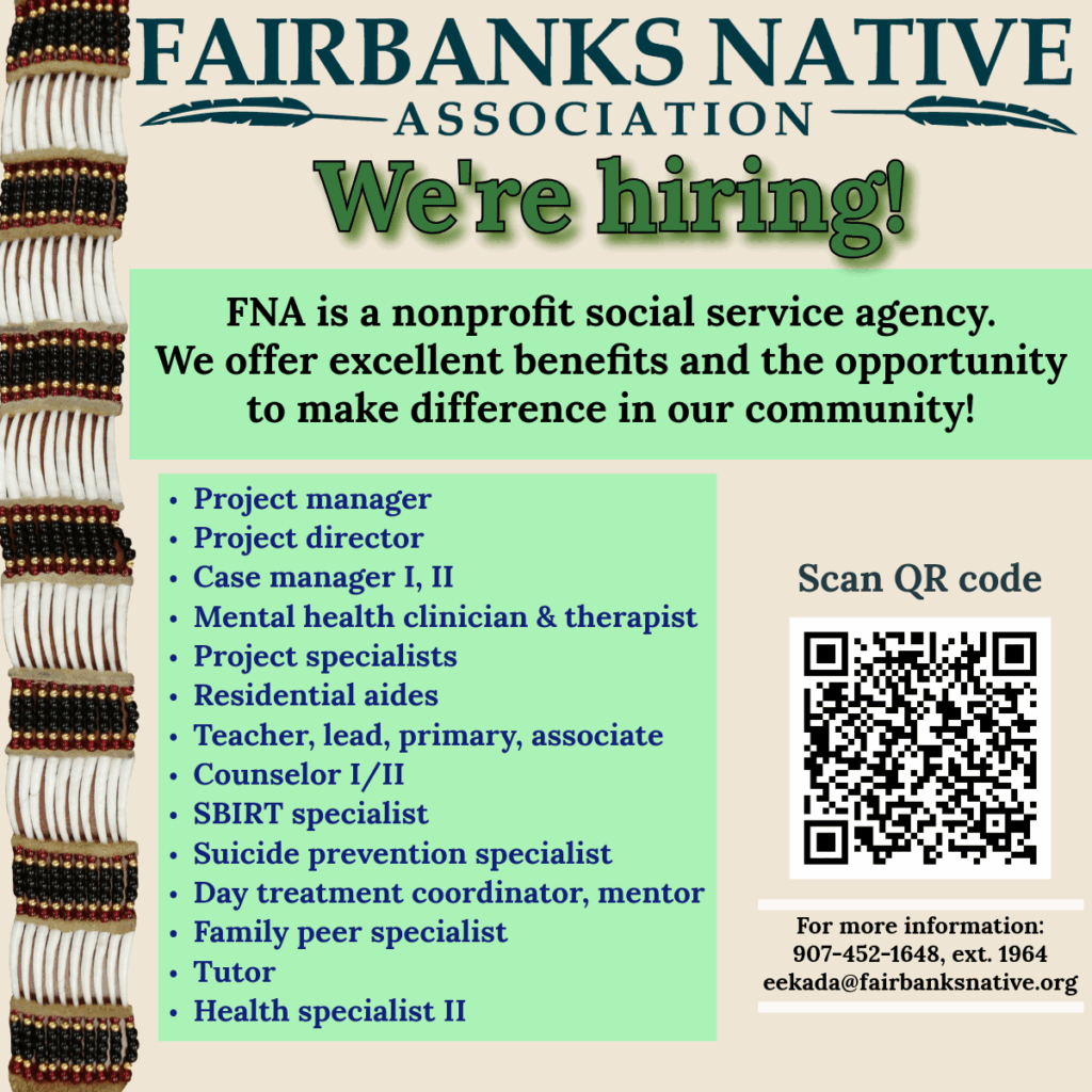 In a celebration of Alaska Native culture, two young women and a baby girl were elected as Fairbanks Native Association royalty. The new Miss FNA is Alana Moses, 18, Yup’ik, Cup’ik, Iñupiaq, and Koyukon Athabascan. Her parents are Catherine and Calvin Moses. Alana has […]