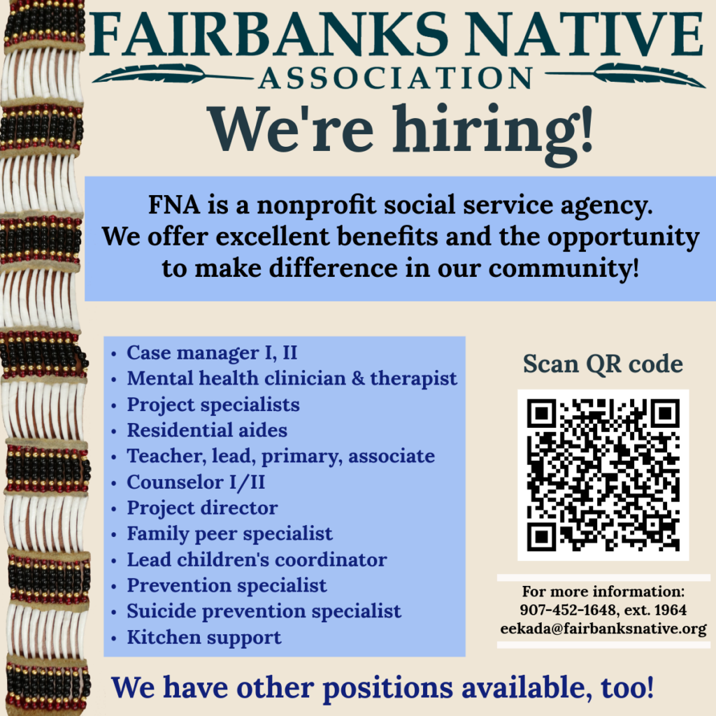 APPLY NOW! CONTROLLER Full Time Management Fairbanks, AK, US Salary:$90,000.00 Annually Fairbanks Native Association is a voice for the people of Fairbanks. Our mission is to improve the quality of life for individuals and families by promoting justice, healing and wellness in our community. We have a vision of a unified, healthy, and empowered Native […]