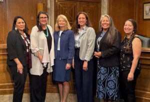 L-R, Melissa Charlie, FNA Executive Director; Lucy Simpson, National Indigenous Women’s Resource Center Executive Director; Sen. Lisa Murkowski, R-Alaska; Dr. Sheri-Ann Daniels, Papa Ola Lokahi Chief Executive Officer; Janet Alkire, Standing Rock Tribe Chairwoman; and Loni Greninger, Jamestown S’Klallam Tribal Council Vice Chairwoman. Photo courtesy of Senate Committee on Indian Affairs.