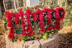 A wreath of red roses spelling out “MMIP” was then placed at the base of the cross by the Native leadership.